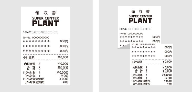 - クレジットカードをご利用の場合はレシートからカード情報を切り取り、「PLANTロゴ」「購入日時」「購入商品名・金額」「合計金額」が分かるように撮影してください。