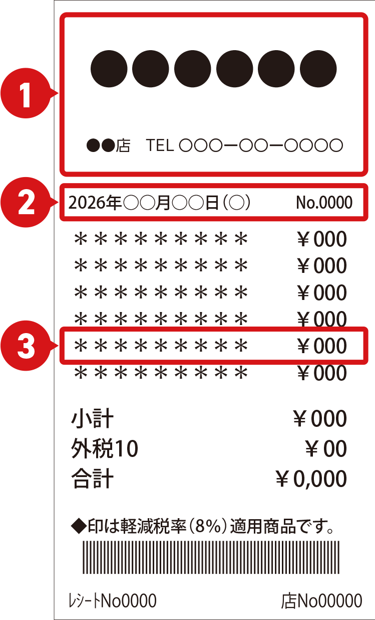 ※長いレシートの場合は、該当部分以外は